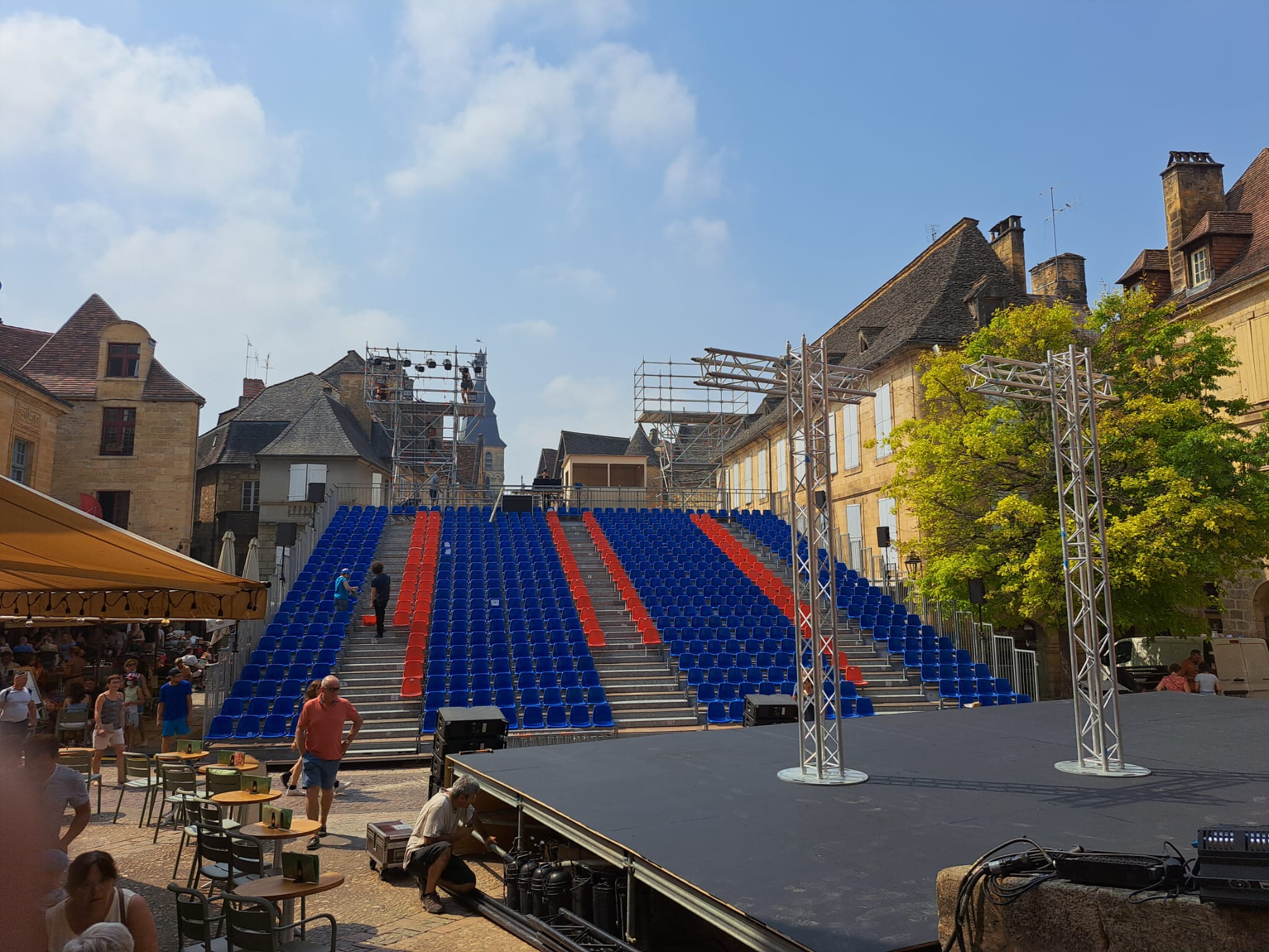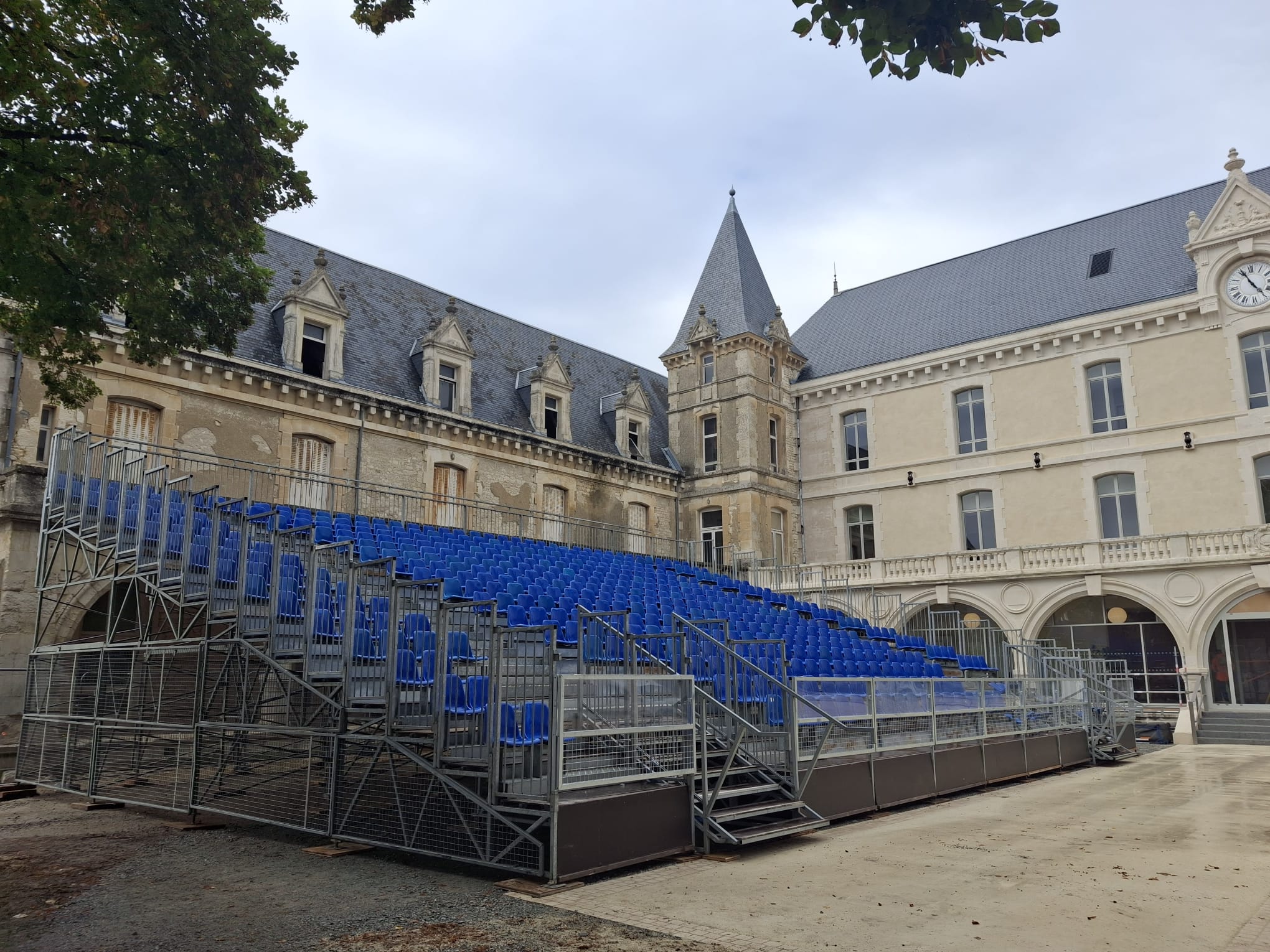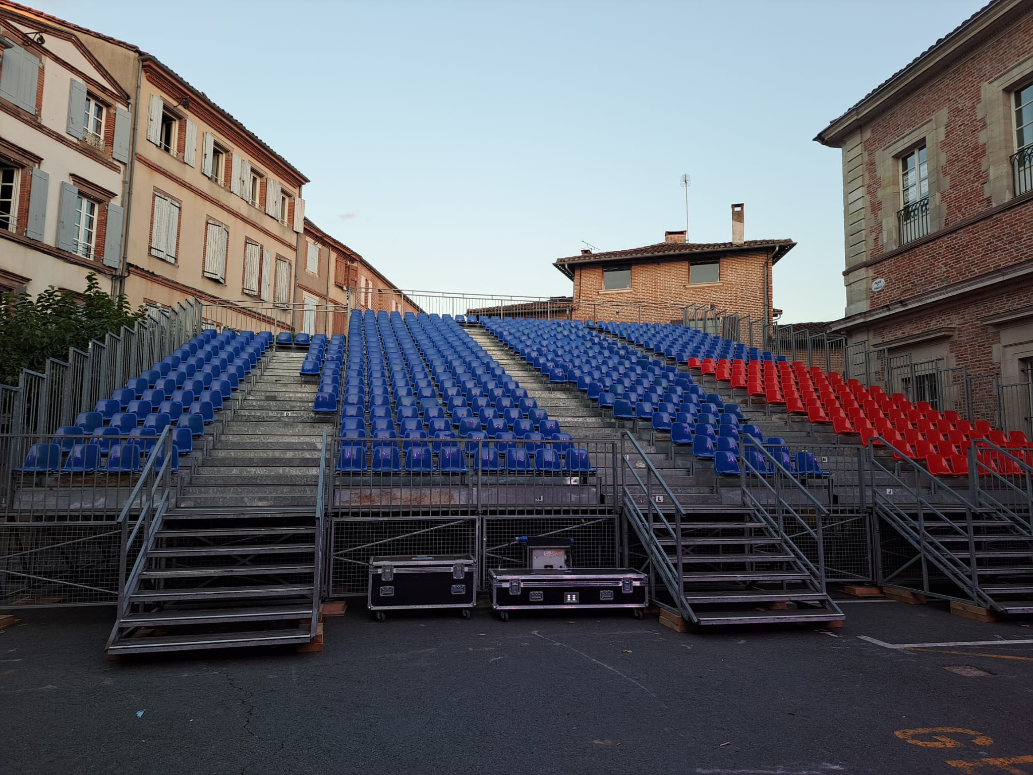 Selon les exigences, nous proposons des tribunes partant du sol (1er rang au sol) ou surélevées avec des escaliers avant, arrière ou de type vomitoire.